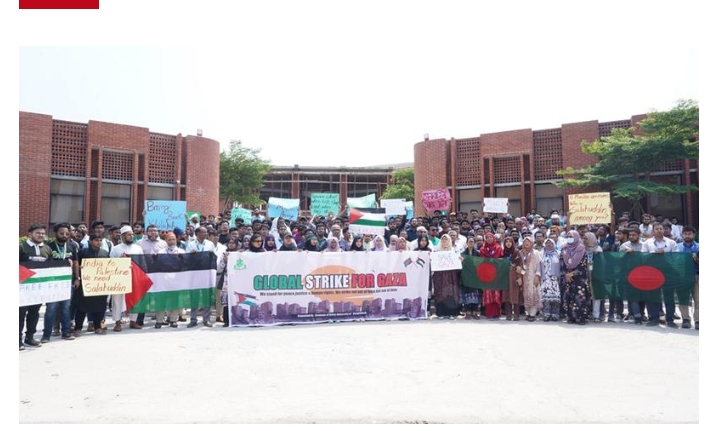 এসময় শিক্ষার্থীরা বলেন, ফিলিস্তিনিদের ওপর ইসরায়েলের বর্বরতার চরম মাত্রায় পৌঁছে গেছে। বাংলাদেশের প্রতিটি নাগরিকের উচিত এই হত্যাকাণ্ডের বিচার দাবি করা। পাশাপাশি নিজ নিজ অবস্থান থেকে ইসরায়েলের সব ধরনের পণ্য বয়কট করা।